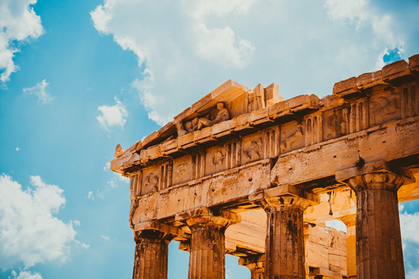 Standing as a proud historical landmark of Athens, Greece, Parthenon is a terrific example of ancient Greek Architecture. Dating back to around the 5th Century remains from Parthenon are one of the most recognizable elements from that era with an extensive detailed identity. Shining bright on the hilltop, this structure highlights some of the noteworthy features from Greek-style architecture like Corinthian Pillars, Pediments, and Stone Pedestals and carved Sculptures.