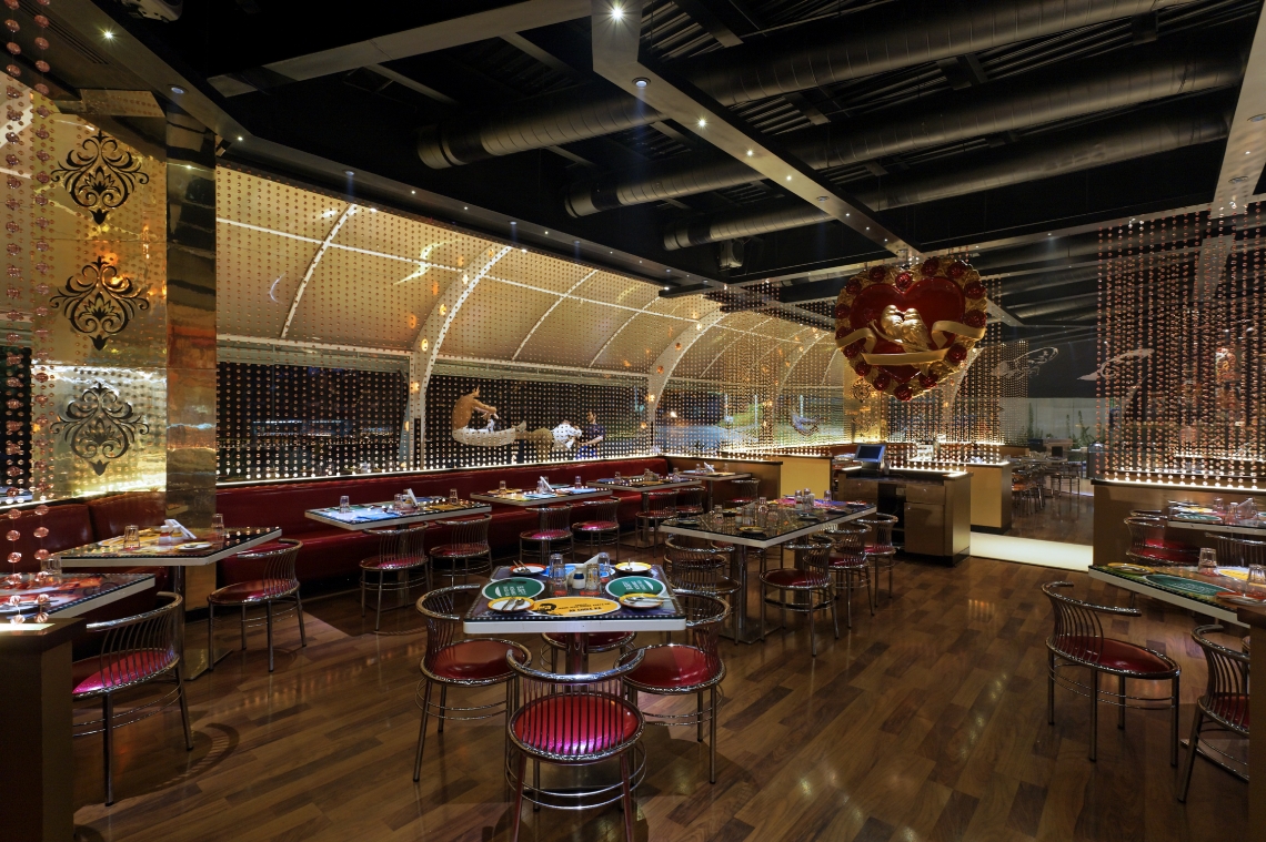 This 7,500 Sq. ft retro style, Bollywood Bar and Restaurant is one among three others in the same cluster, each restaurant being a different theme.