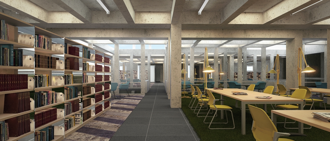 Description: The brief was to give B.V Doshis original IIM-B library facility an interior face-lift and reorganise the existing program to suit modern library systems, thereby help carry this masterpiece into the future.