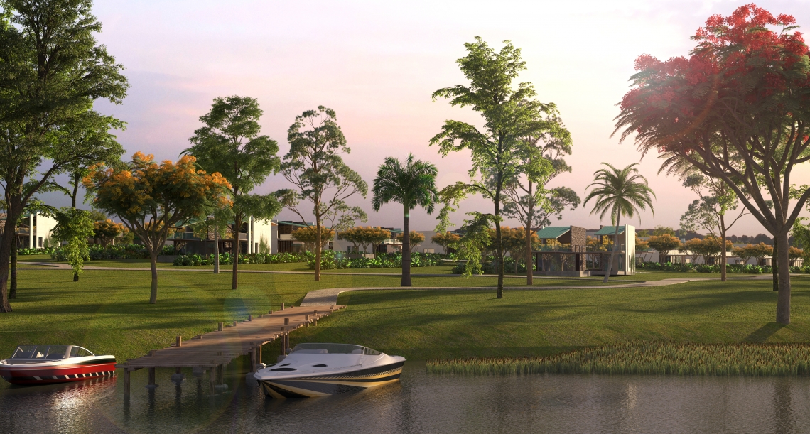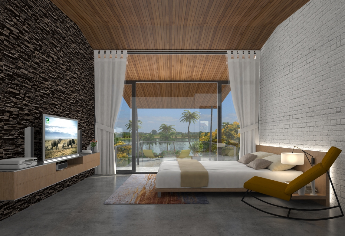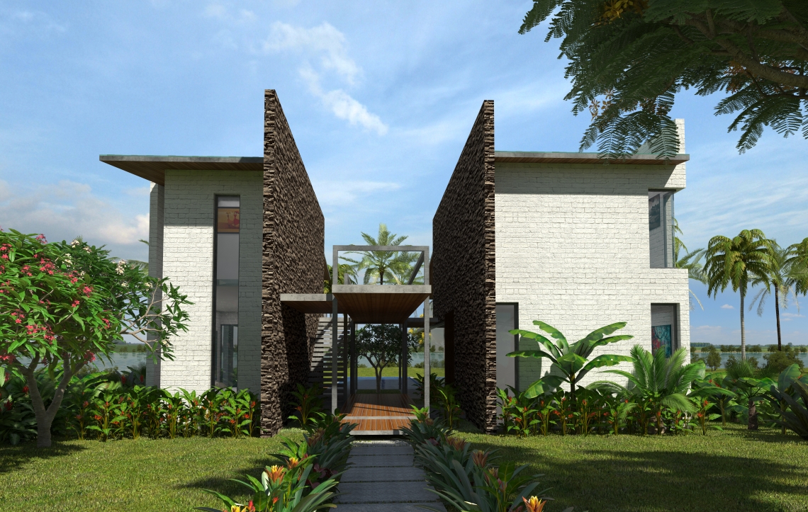 Description: A sprawling 25 Acre residential community located along the banks of Kabini River consists of 35 luxury villas, each with a spectacular view of the waterfront. The design of the Villa is inspired by South East Asian contemporary style of architecture, each with a private large landscaped garden space surrounding their villa that allows for private gatherings. All common spaces are organised around a linear courtyard that extends into a large invinity pool. A similar linear terrace deck on the upper floor, hovers partially above the pool and is visually linked to the waterfront along the axis.
