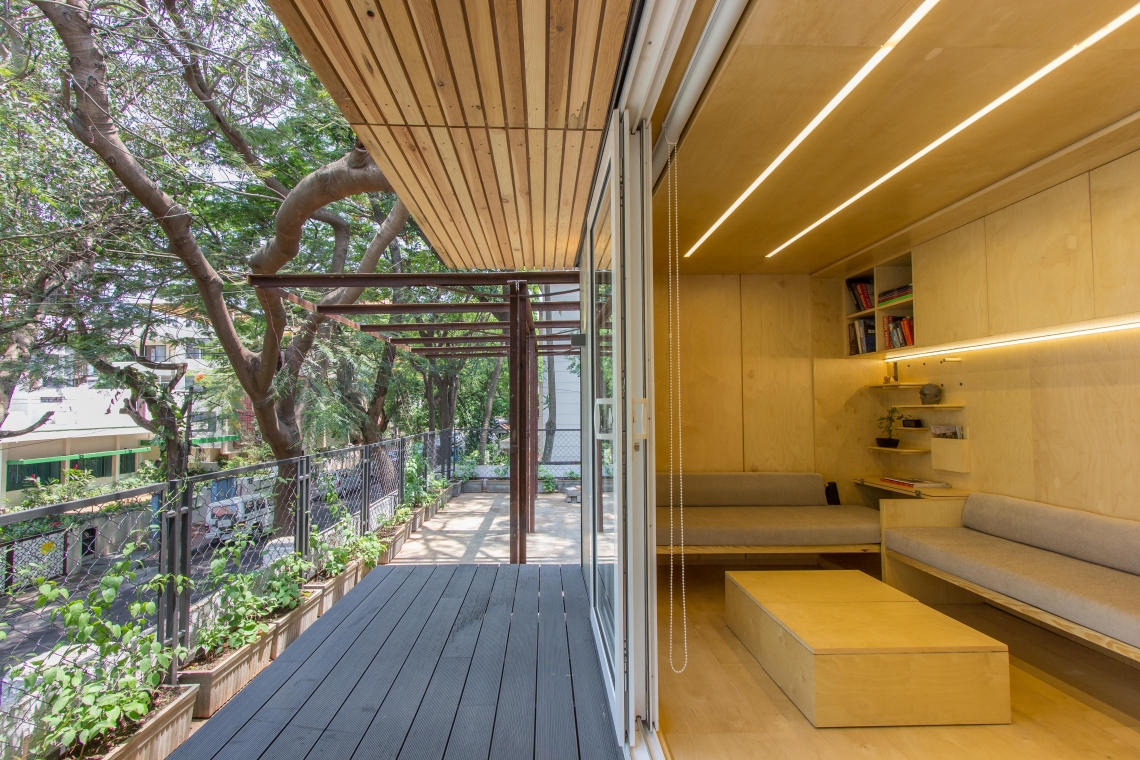 Description: Zen Den is a modular home which has been designed keeping in mind various aspects of sustainability and impact on the environment. The construction sector plays an important role in the sustainable development of the world and the economy. It includes the environmental, economic and social aspects which contribute to the development of society. Sustainable construction can therefore be considered as a subset of sustainable development and includes a range of issues such as re-use of existing building assets, design for minimum wastage, resource efficiency and reduction of pollution. Zen Den has a structural system of steel, which is the most recycled construction material on the planet, almost half of it being utilised from waste. It also helps reduce the time and labour spent on building construction, thereby increasing resource efficiency. Furthermore, the steel skeleton method used enhances lightness in construction, ease of prefabrication, speed of erection, enhanced quality and accuracy. One of the driving forces behind Zen Den being a sustainable home and shelter is the intelligent use of materials. The exterior cladding is composed of Fiber cement board mounted onto the structural system. Fiber cement is a key material for sustainable building practices and is a dependable resource in the construction of healthy homes. Also, to safeguard human health and the environment, fiber cement is made with recycled materials including cellulose fibers, sand and cement. One of the reasons for this growth is there has been an industry wide shift in focus to achieving a reduction in building weight, by substituting heavyweight masonry with lightweight systems. This is an important aspect of the Zen Den, being a temporary structure; it does not require any excavation of earth and yet provides the same amount of comfort and safety as an orthodox permanent structure.